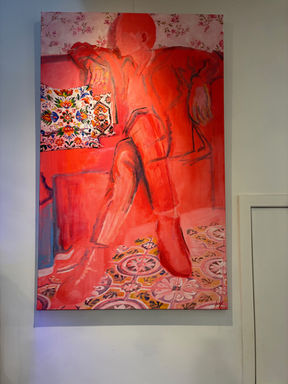 Cette exposition réunit les œuvres de Veronika Fekete et Pauline Henry, autour d’un socle commun de références littéraires, artistiques et sensibles. Elle trouve son point de départ dans la figure de Gertrude Stein — collectionneuse d’art à l’œil acéré, autrice ayant cherché toute sa vie à révolutionner la langue — et dans la lecture du livre Le passé est ma saison préférée de Julia Kerninon, qui a nourri notre réflexion. Dans son texte, Julia Kerninon parle avec justesse de l’amour de la langue : celle dans laquelle on naît, celle que l’on choisit d’habiter, celle que l’on lit, traduit, écrit. Son rapport intime à la lecture et à l’écriture fait écho à notre expérience, ainsi qu’à notre pratique artistique, où les formes, les couleurs et les motifs deviennent un langage à part entière. Sous son apparente évidence qui évoque une comptine d’enfant, la phrase de Gertrude Stein qui donne son titre à l’exposition « Rose is a rose is a rose is a rose », interroge en fait de façon radicale la réalité des choses, leur présence, leur nature changeante. Par ce dispositif poétique de répétition, qui tient à la fois de la ritournelle et de l’incantation, Stein convoque l’objet dans toute son épaisseur sensible, symbolique et affective, tel un peintre qui fait apparaître une forme par touches successives. Cette répétition assumée nous a aussi été une inspiration très riche, évoquant à la fois notre amour partagé pour les fleurs, pour la couleur rose et tout ce qu’elle peut évoquer de douceur et de puissance, et pour le travail d’artistes femmes qui ont marqué notre regard, des fleurs de Georgia O’Keeffe aux paysages abstraits d’Helen Frankenthaler.